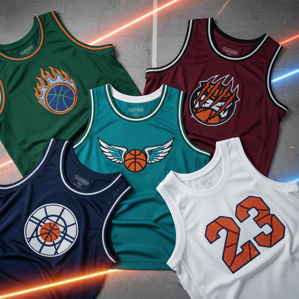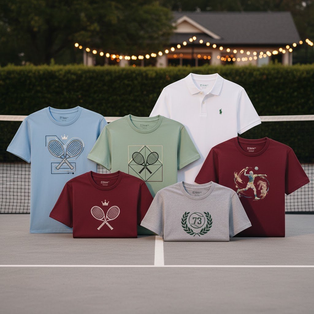 Soft, durable tees adorned with detailed basketball and tennisthemed embroidery.