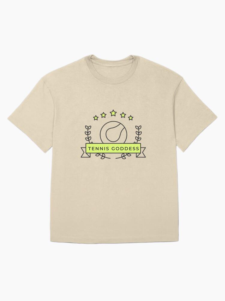 Tennis Goddess Ball Star Branch Colored Badge Sticker Cotton T-Shirt Cotton T-Shirt – Straight-Cut Soft Cotton Jersey Tee with Ribbed Crew Neck and Dropped Shoulders