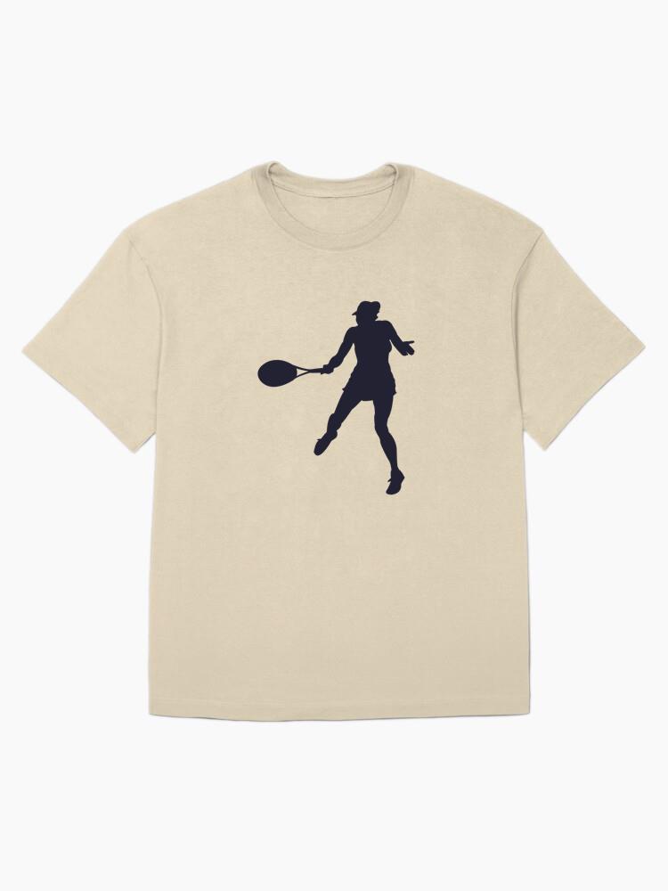 Tennis Player Girl Silhouette Cotton T-Shirt Cotton T-Shirt – Straight-Cut Soft Cotton Jersey Tee with Ribbed Crew Neck and Dropped Shoulders