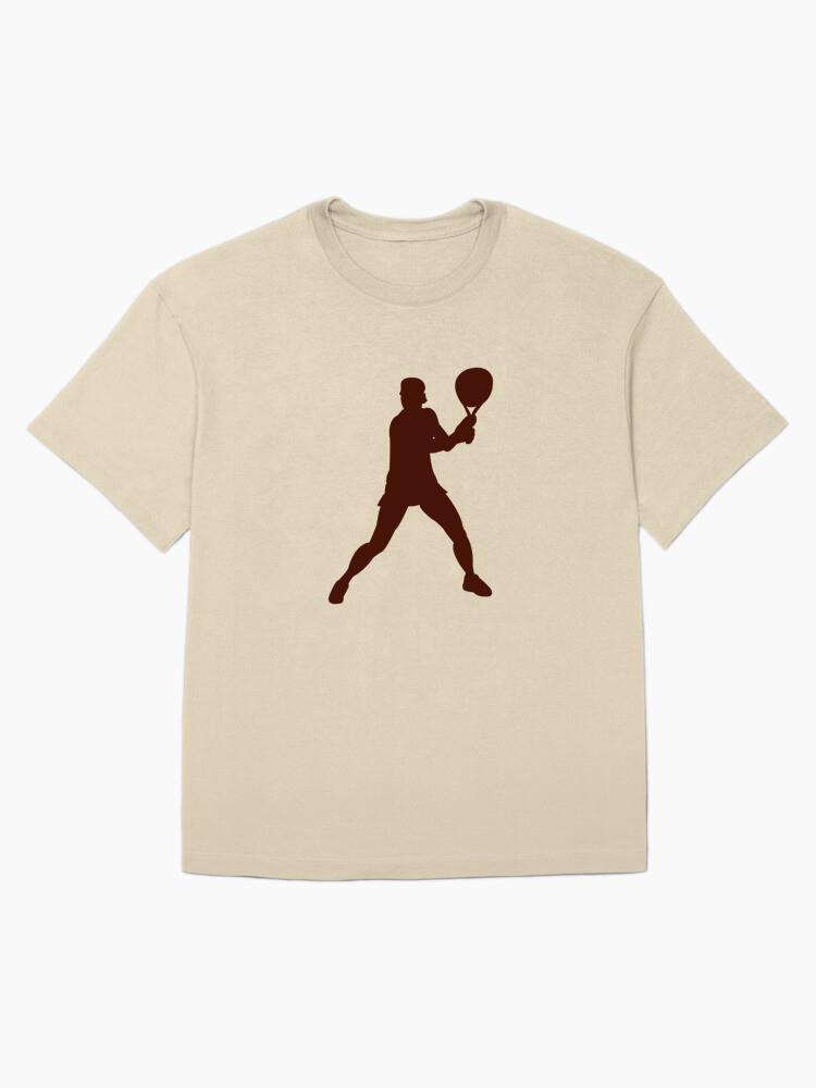 Tennis Player Playing Silhouette Cotton T-Shirt Cotton T-Shirt – Straight-Cut Soft Cotton Jersey Tee with Ribbed Crew Neck and Dropped Shoulders